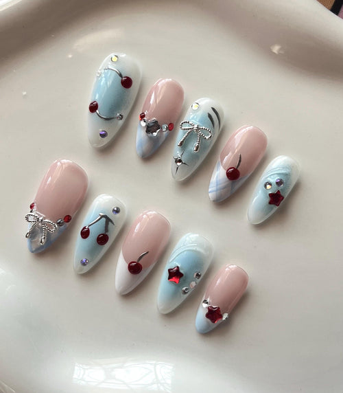 Polka dot french Press on nails set -